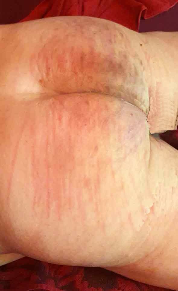 Para aliviar mi trasero, que ardía de dolor y estaba cubierto de ronchas, la Sra. R me acarició a mí y a mi trasero extensa y tiernamente.