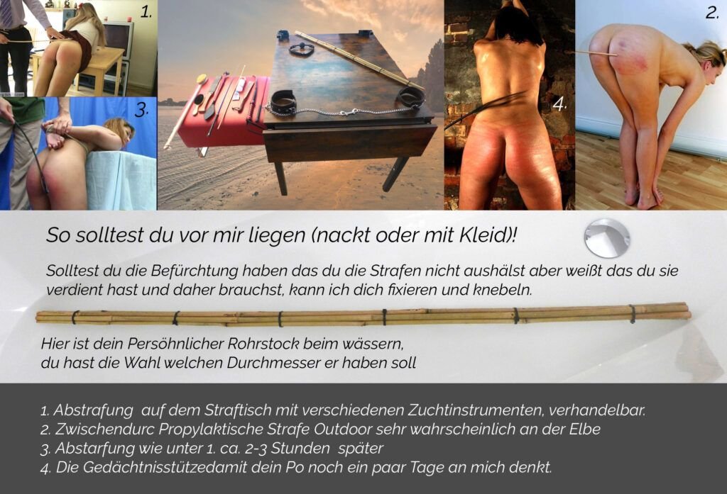 Por supuesto, esto es incierto, ya que vivimos un poco más separados. Sin embargo, se ha dado cuenta por sí misma de que una buena insinuación o ponerse de rodillas no sirve de nada, sino que sólo un azote fuerte es prometedor. Por lo tanto, en el futuro será castigada regularmente una vez al mes. Tiene un catálogo de castigos. También recibe formación motivacional para que no descuide sus actividades deportivas.