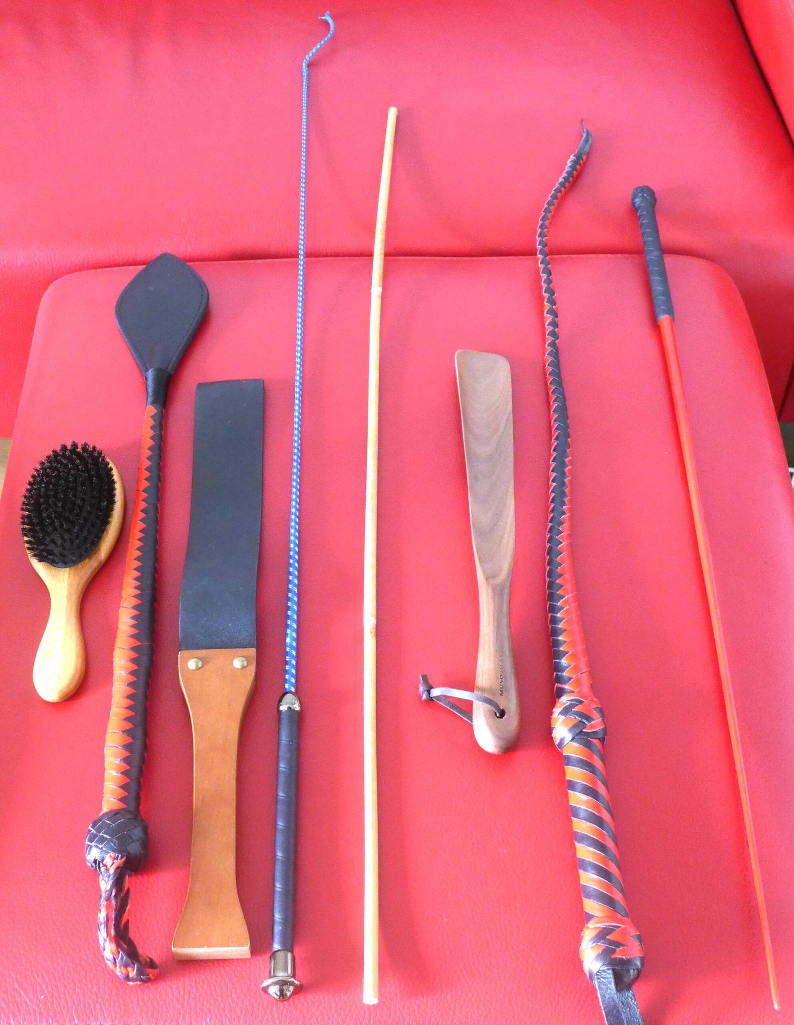 Entonces la cosa se puso seria y le enumeré por qué tenía que ser castigada y cuántos golpes iba a recibir en su trasero desnudo. No tuve que explicarle los instrumentos, ya que los había visto todo el tiempo. También había traído un regalo, que probablemente quería utilizar para hacerme sentir un poco más misericordioso. Me pidió que no utilizara un matamoscas en concreto. Le pregunté si ya lo había probado. Como no era el caso, inmediatamente hice una prueba en su trasero expectante.